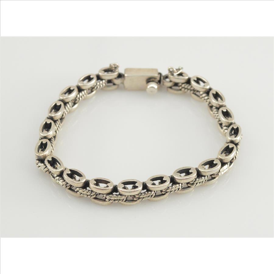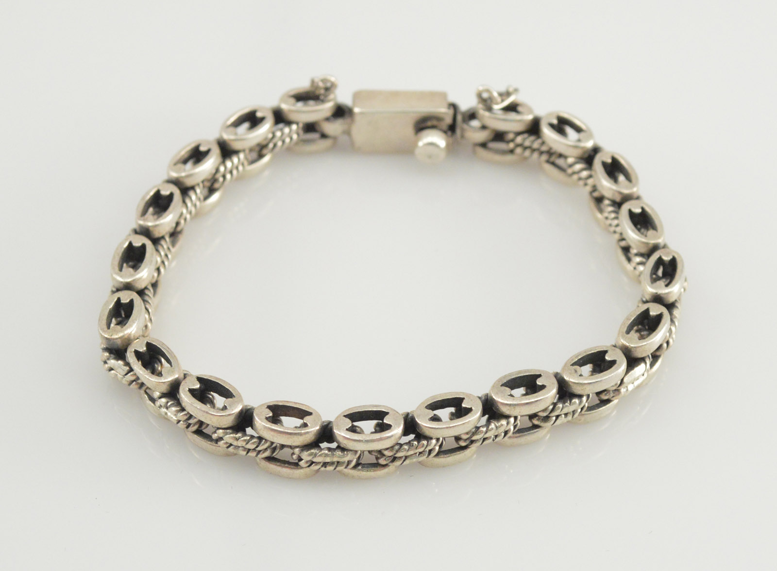 All sterling jewelry is left in its original state, we do not polish, buff or clean most of our pieces. Our philosophy is that you can always polish an item to make it look new, however it takes years to age an item with its original patina.