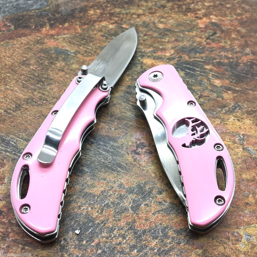 3.5" Elk Ridge Pink ELK Cutout Outdoor Camping Hunting Pocket Knife
