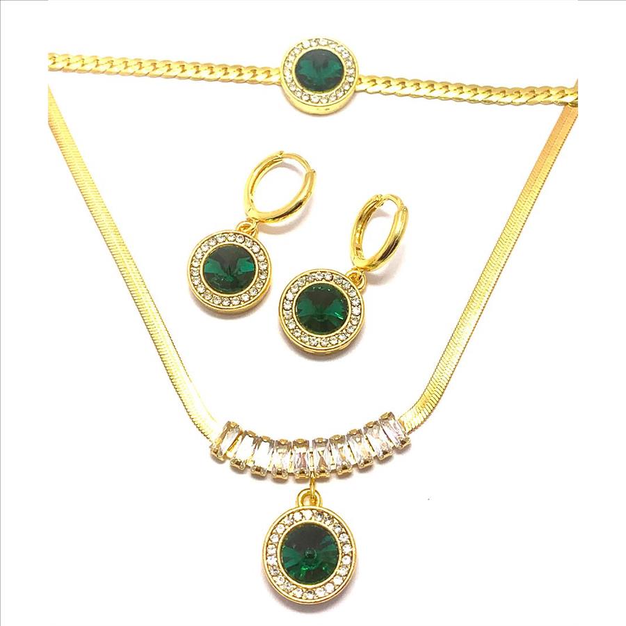 35.50ctw Emerald & CZ Set Fancy Necklace, Bracelet & Earrings