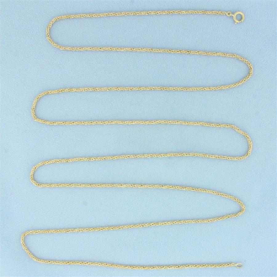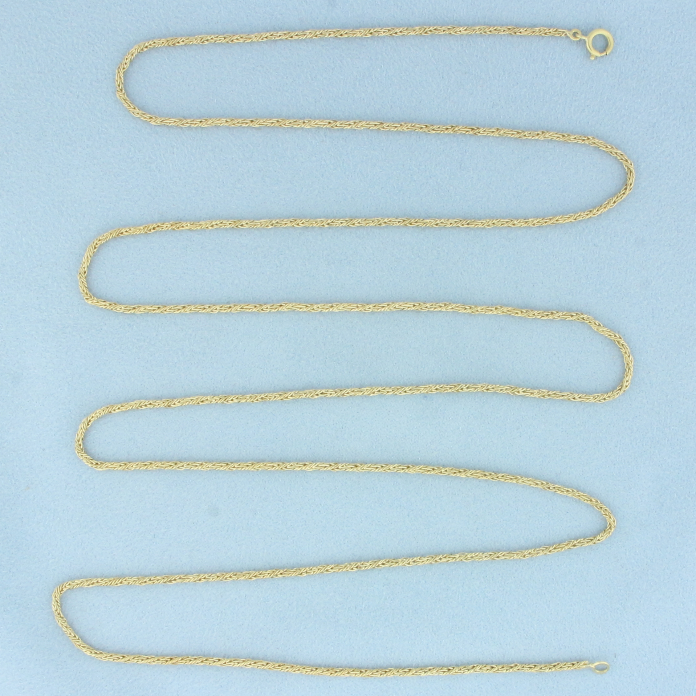 In 14k yellow gold. 36 inches long and 1.8mm thick. Spring clasp. 10.4g.