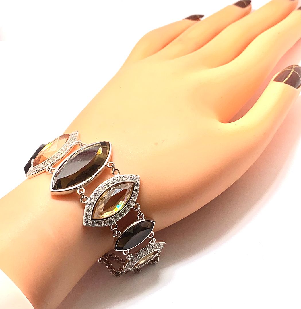 $372 18k Gold & .925 Sterling Silver 125.00ctw Chocolate. Champagne & White Topaz Large Bracelet