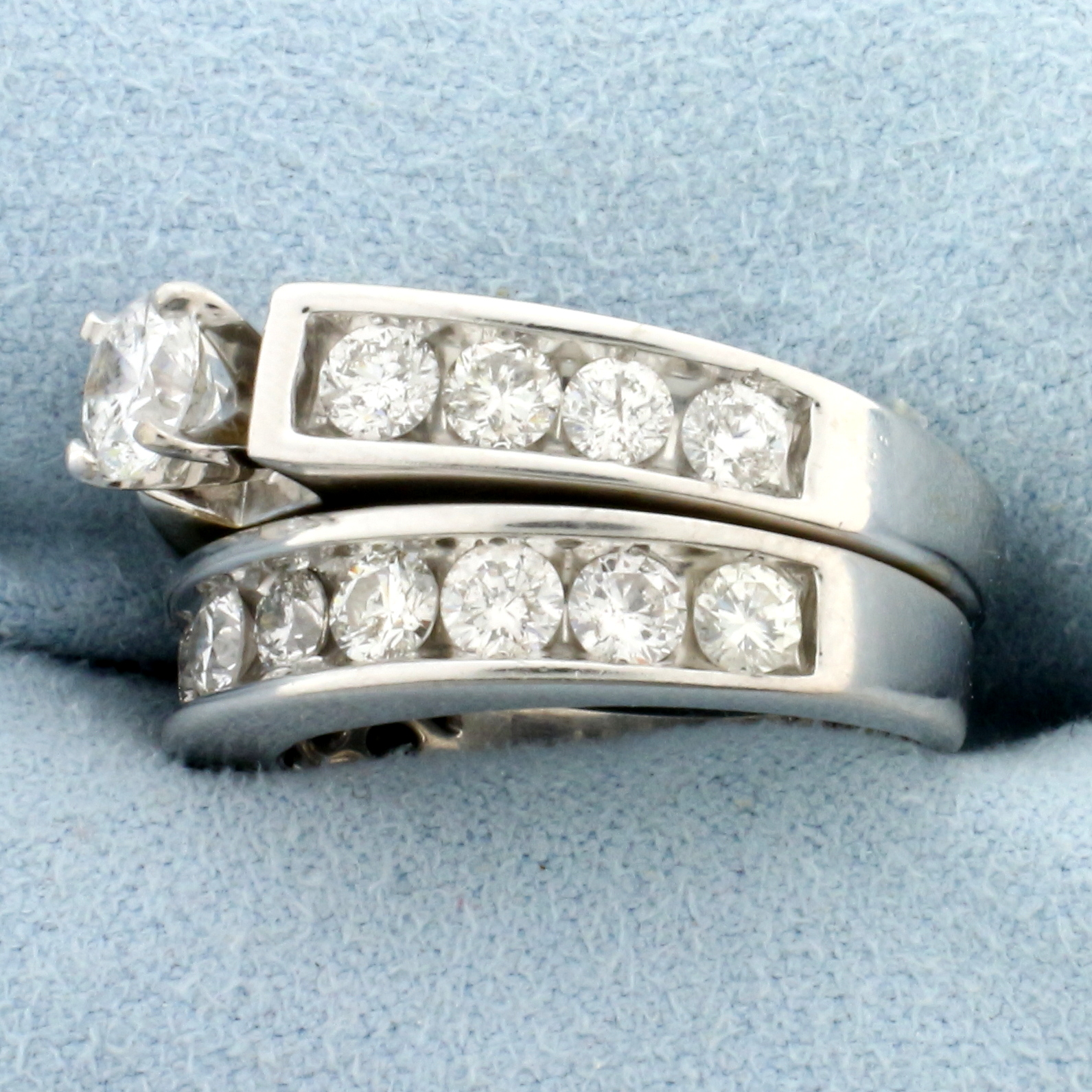 3ct Diamond Engagement Ring and Matching Wedding Band Set in 14k White gold