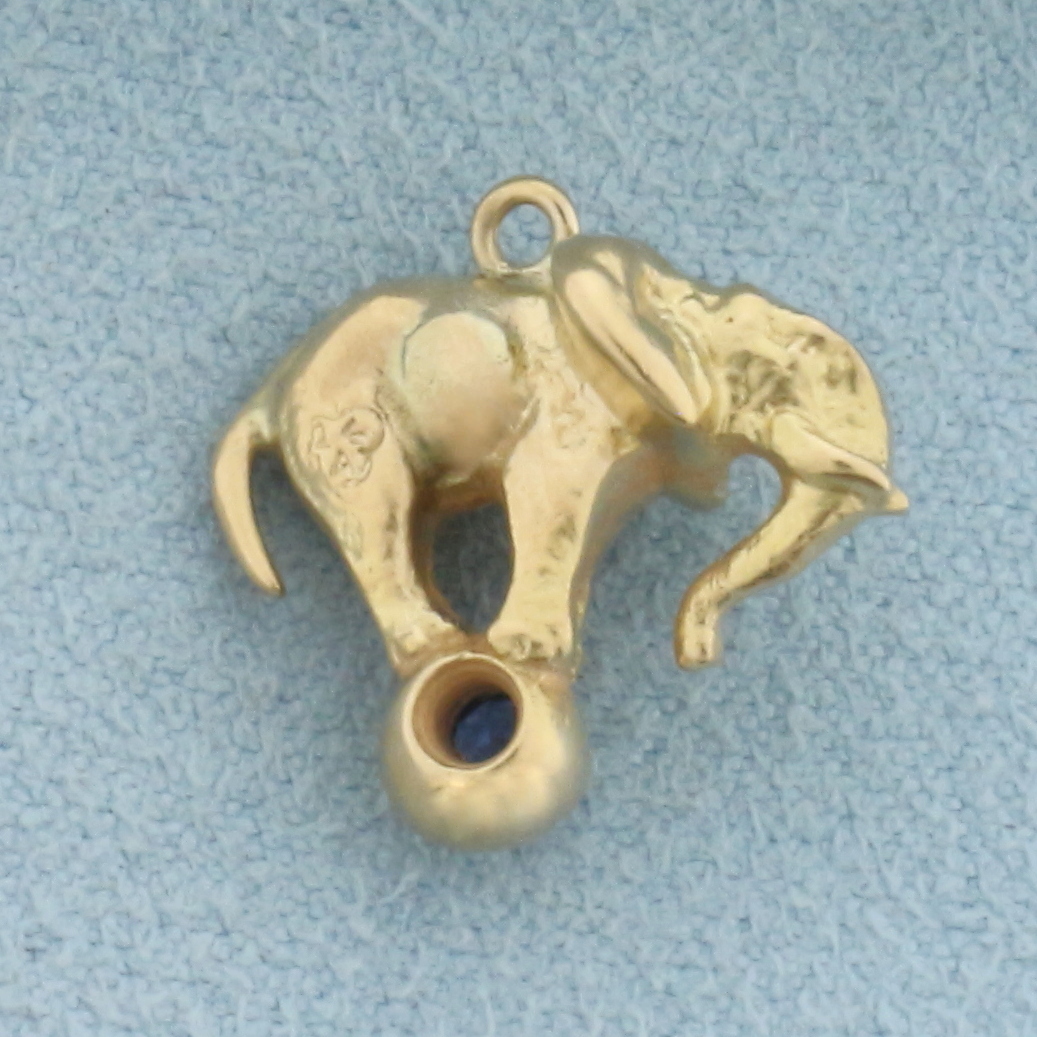 3D Sapphire Elephant Charm in 14k Yellow Gold