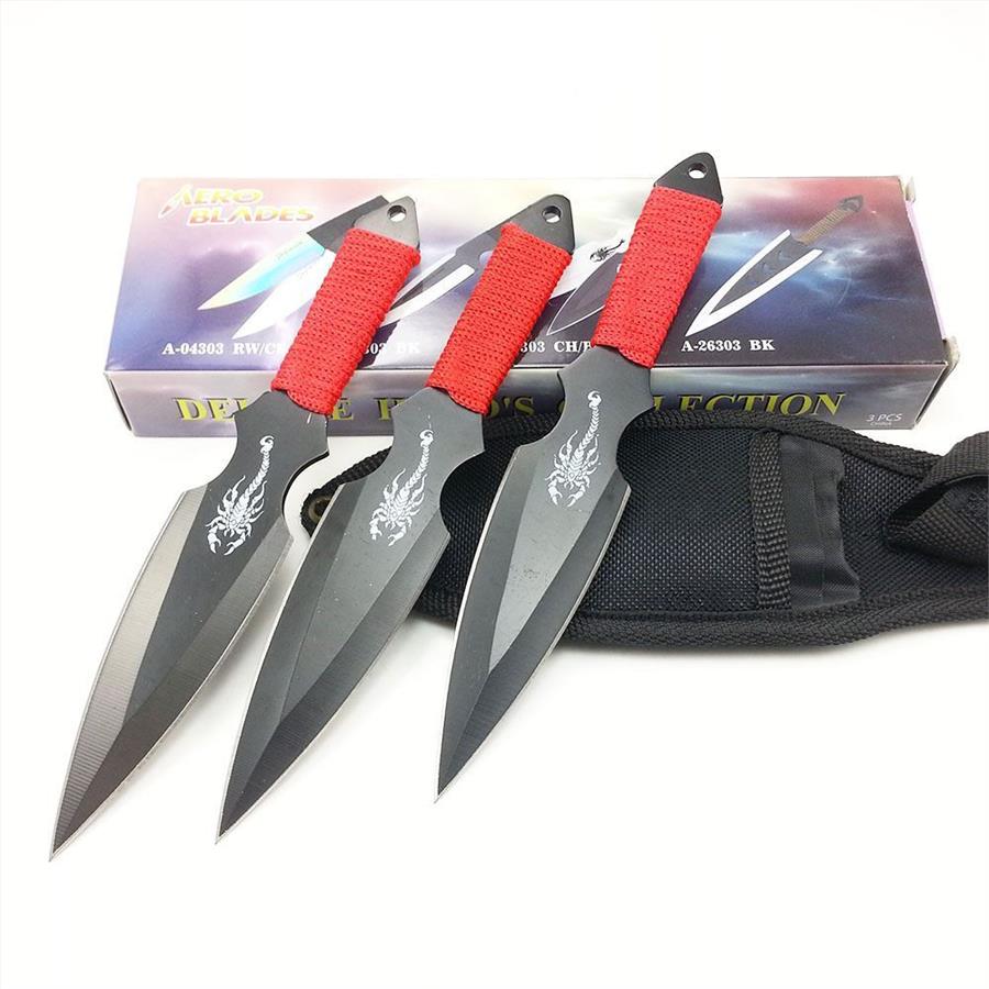 3pc 6.5" Scorpion Red Ninja Throwing Knife Dagger