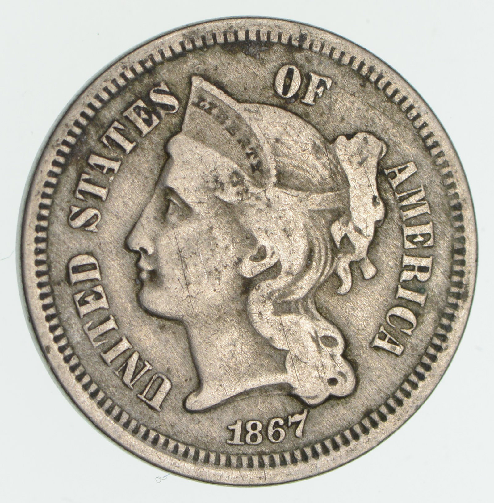 ***3***THREE***Cent***1867 - 3 Cent Piece Copper Nickel - Neat