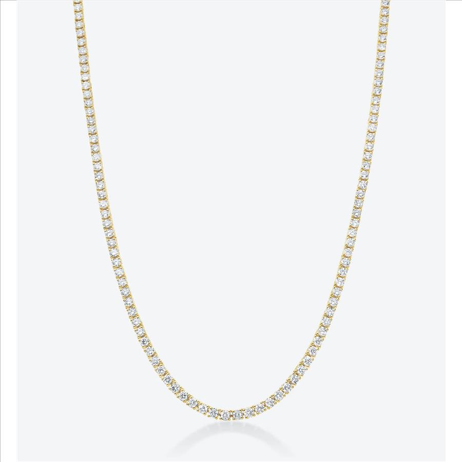 Classic 4 carat round VS real lab grown diamond tennis link necklace in 14k yellow gold.