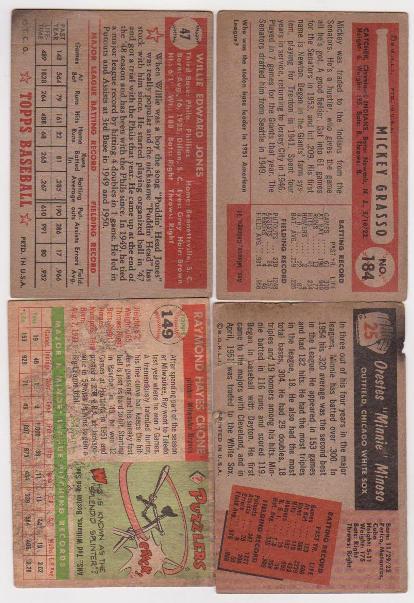 4 Different 1950's Topps/Bowman Baseball Cards (1952-1955)