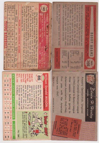 This is a collection of 4 different 1950's baseball cards.  This lot includes: