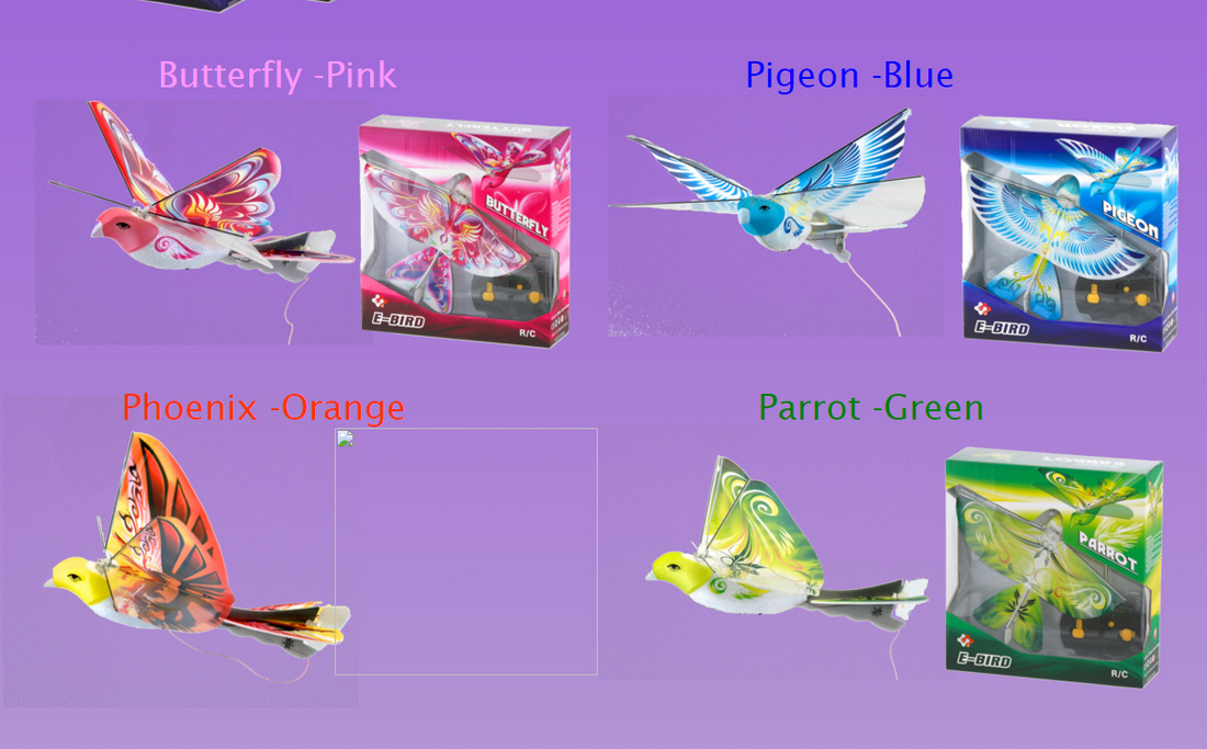 4 eBirds Green Parrot, Blue Pigeon, Orange Phoenix, and Pink butterfly- 2016 Creative Child Preferred Choice Award Winning Flying RC Toy - Remote Control Bionic Bird Each