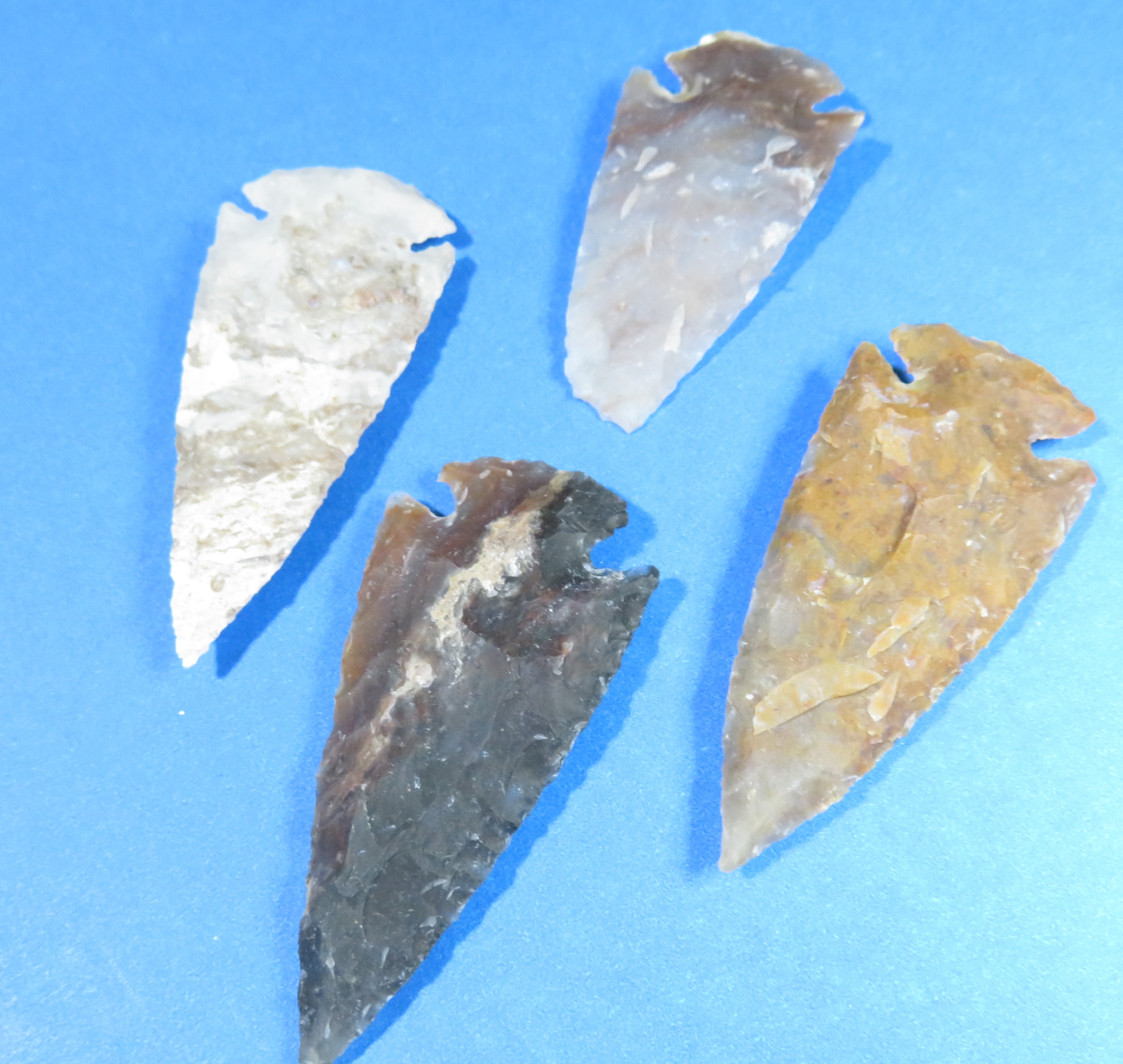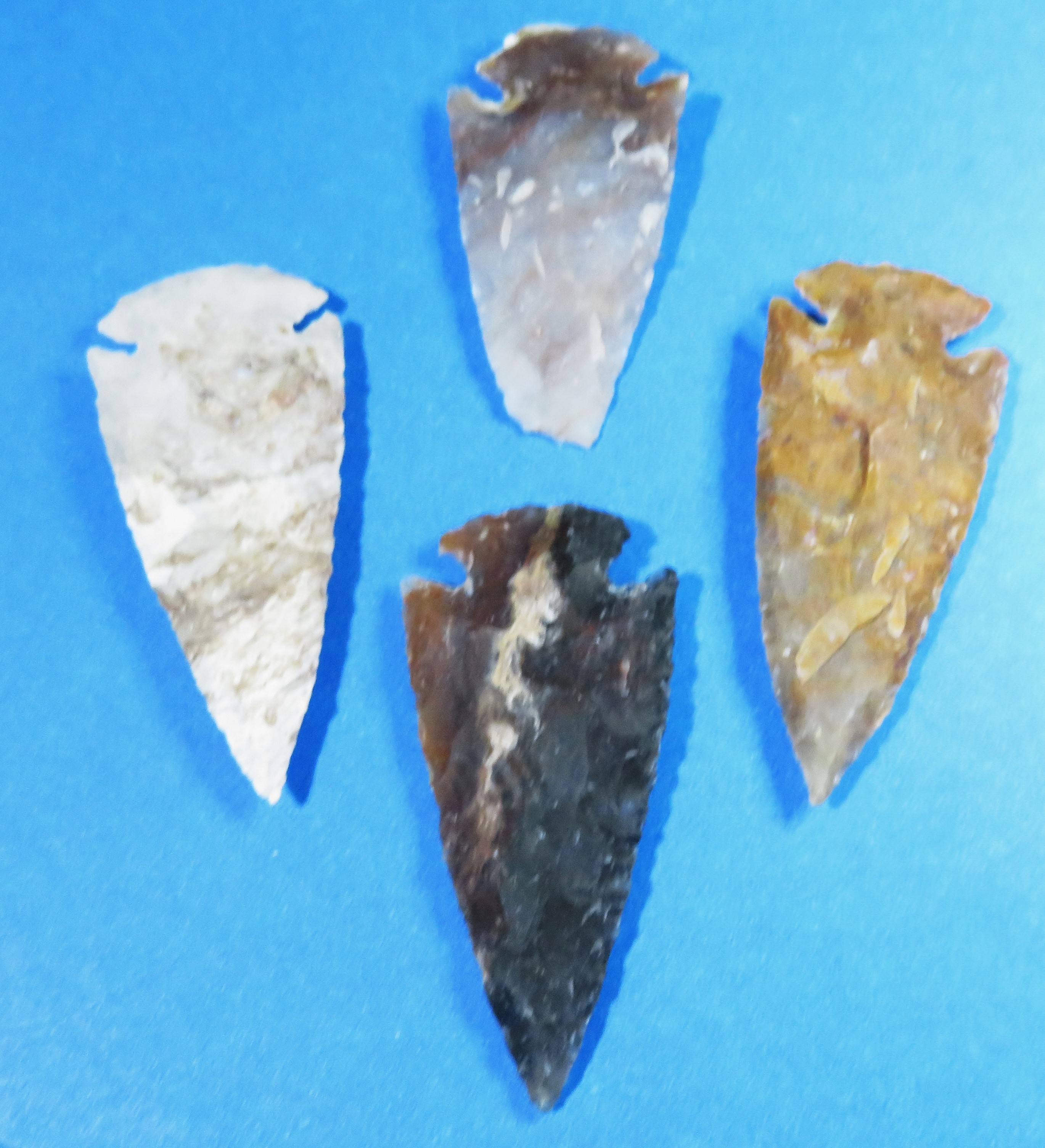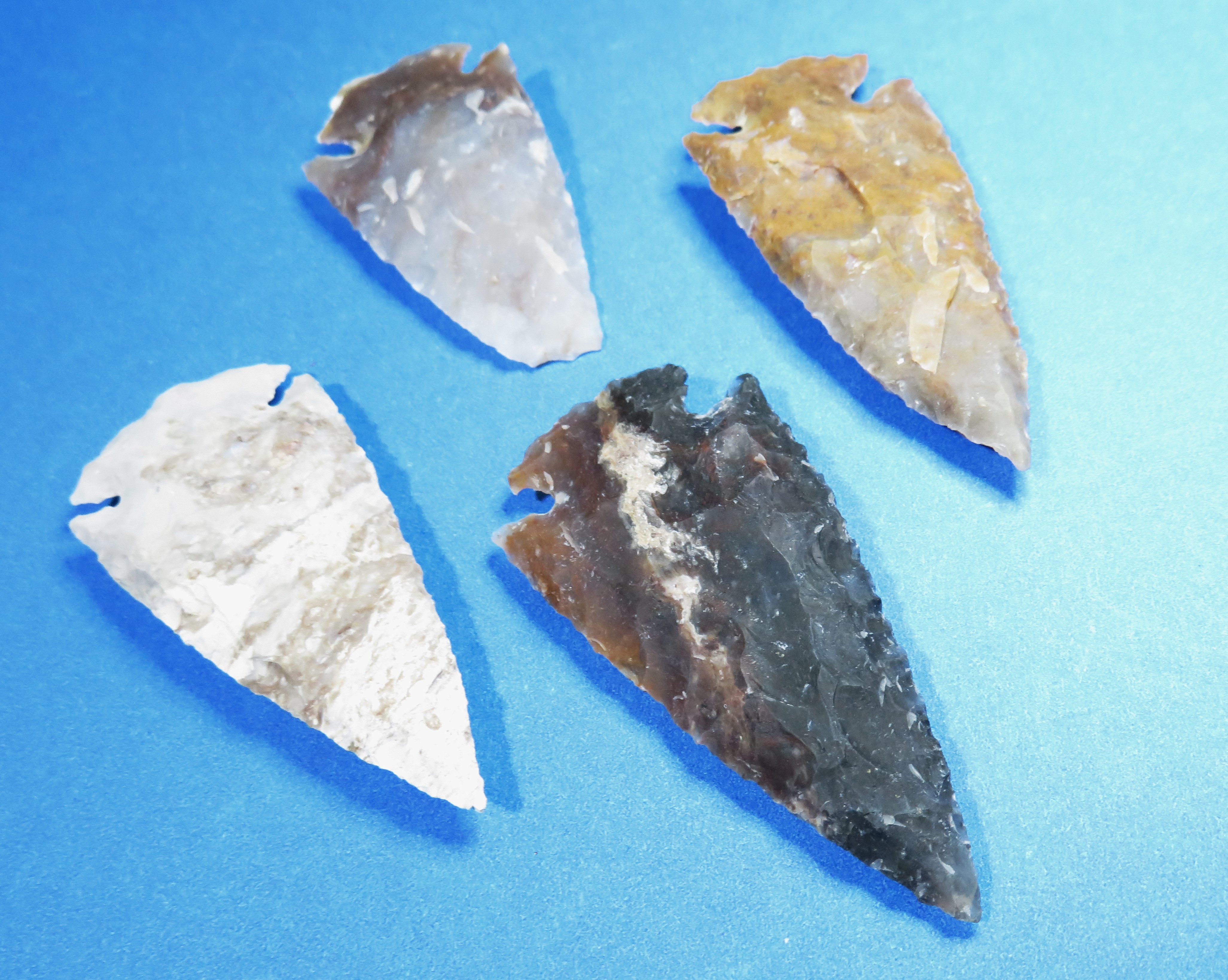 (4) Flint Mapped Arrowheads - Solid Stone -