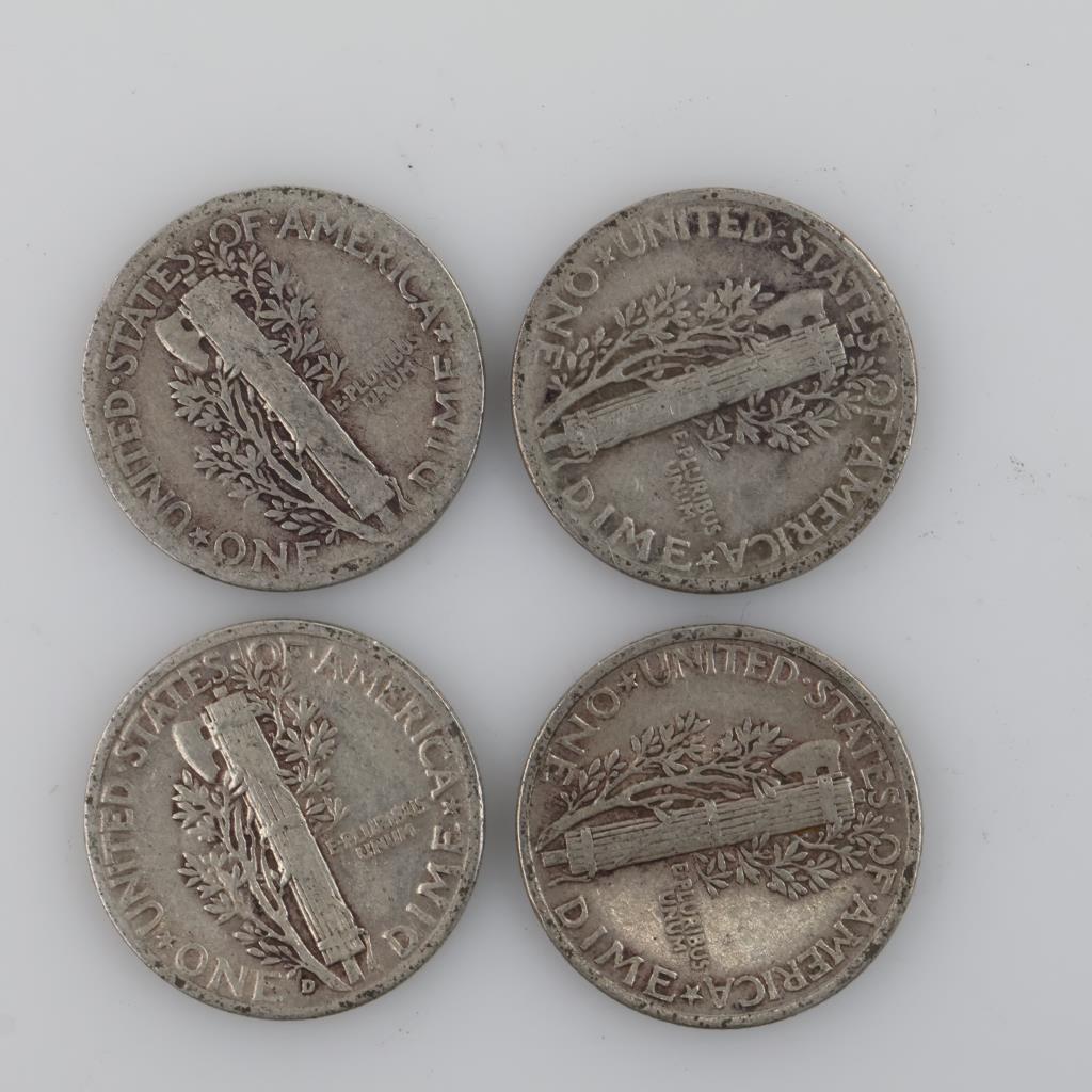 4 US Mercury Silver Dimes