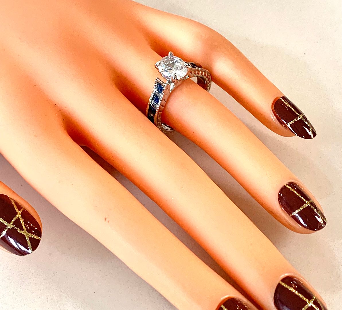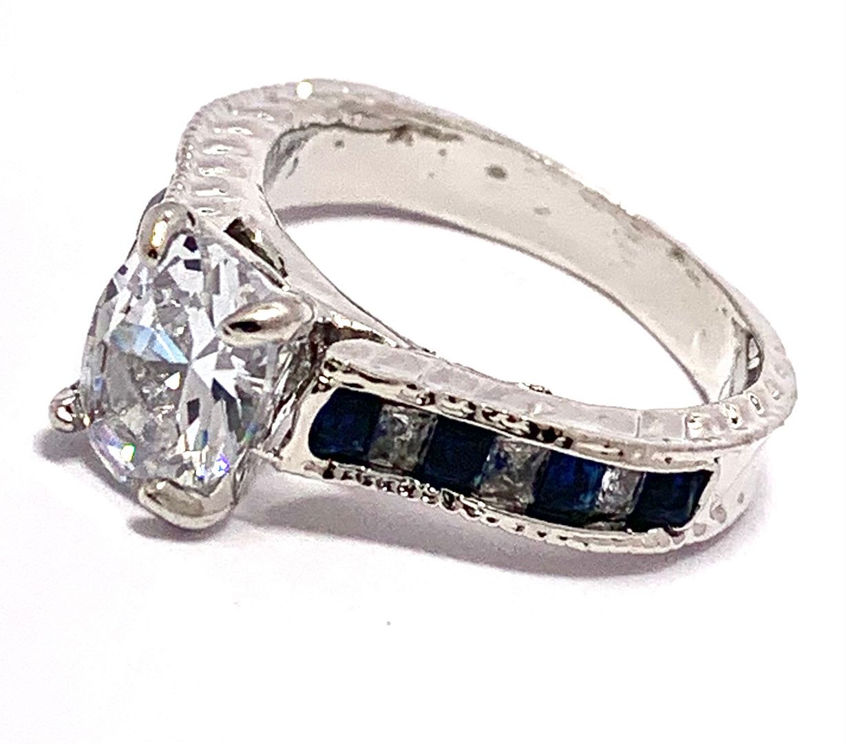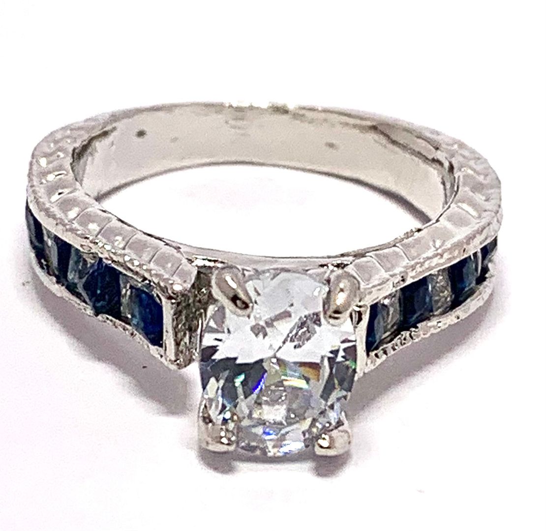 4.50ctw Sapphire & Cubic Zirconia 18k White Gold Overlay Ring