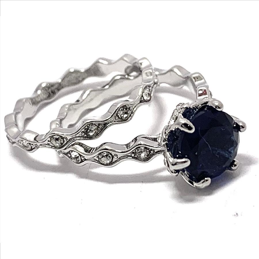 4.75ctw Sapphire & Cubic Zirconia 18k White Gold Overlay Bridal Engagement Ring Set
