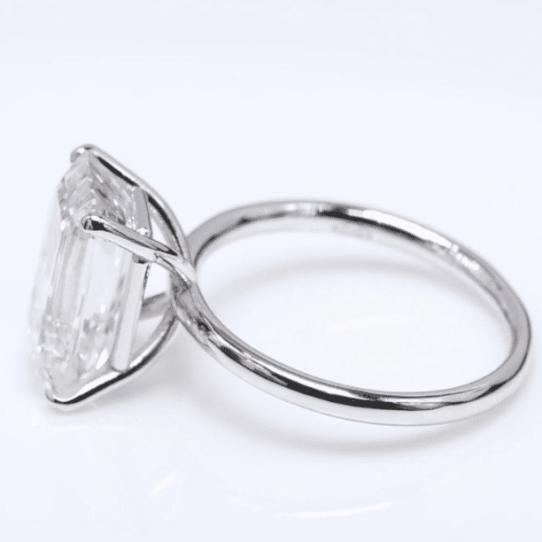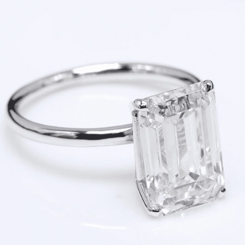 5 Carat CT VS clarity emerald cut lab grown diamond engagement ring set in 14k white gold.