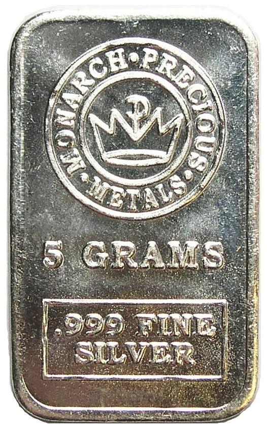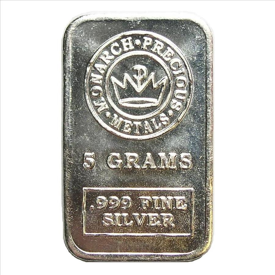5 Gram .999 Pure Silver Monarch Precious Metals Silver Bar