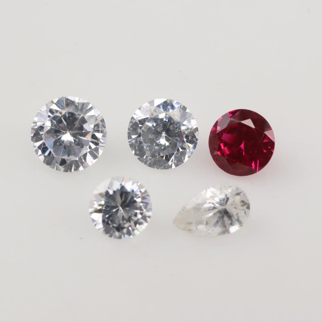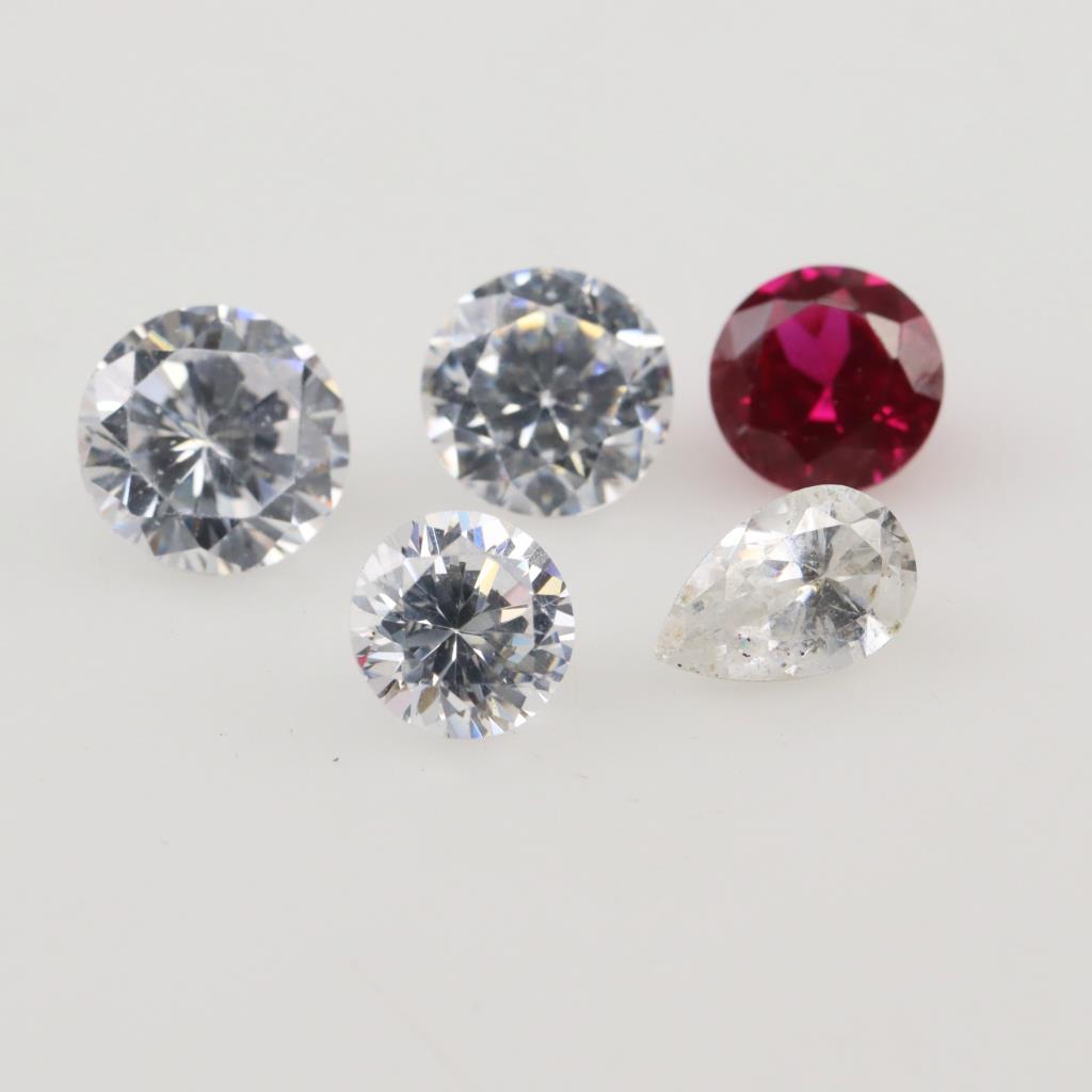 5 Red And Clear Faceted Loose Jewelry Craft Stone