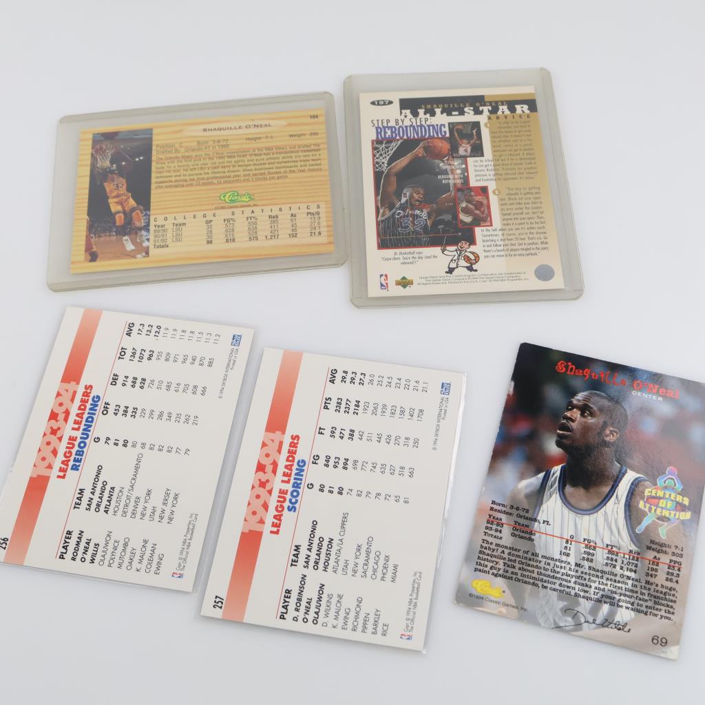 5 Shaquille O'Neal Basketball Trading Cards