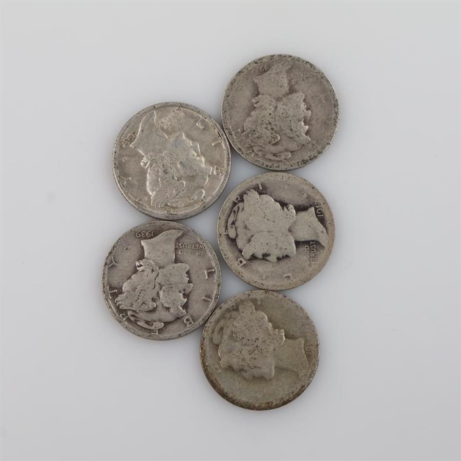 5 US Mercury Silver Dimes