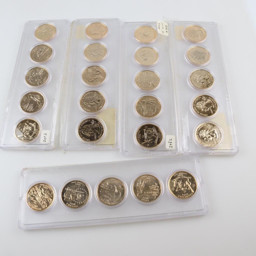 5 US Statehood Gold Plated Quarter Mint Sets