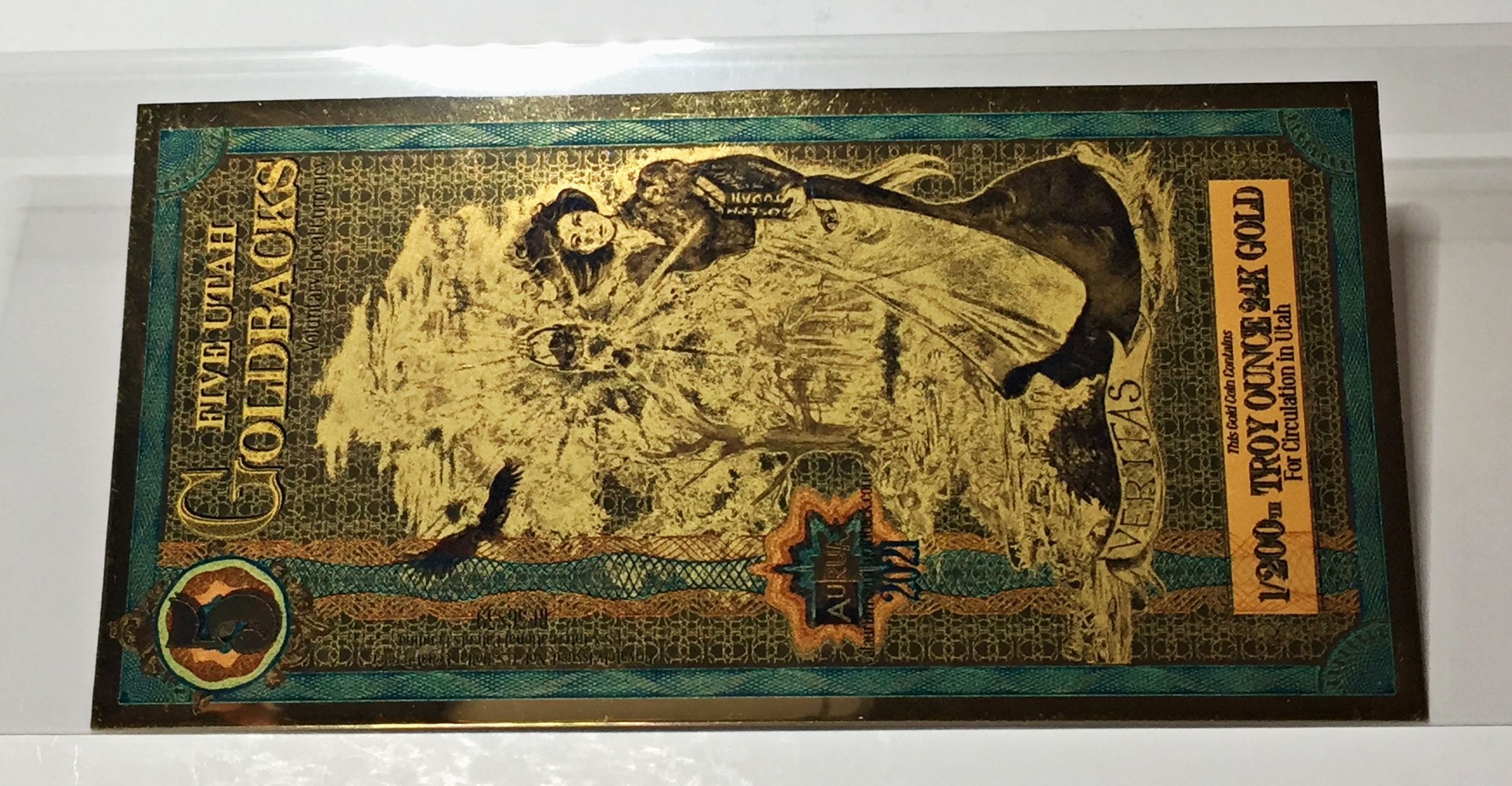 5 Utah Goldbacks*1/200th Troy Ounces of 24K Gold*For Circulation in Utah*Voluntary Local Currency