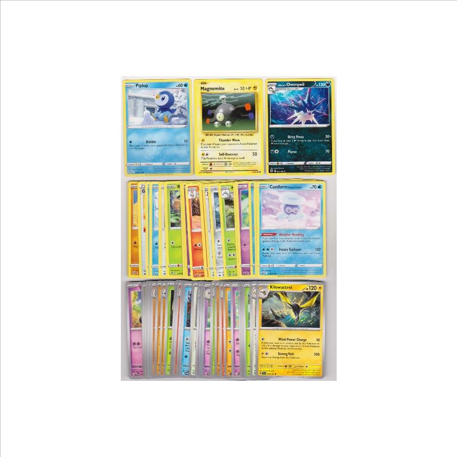 This is a collection of 50 different Pokemon trading cards.  These range from 2016 to 2024.  These are mostly in EX to Near Mint condition.  This lot includes 2022 Piplup, 2016 Magnemite, 2024 Kilowattrel, and more.