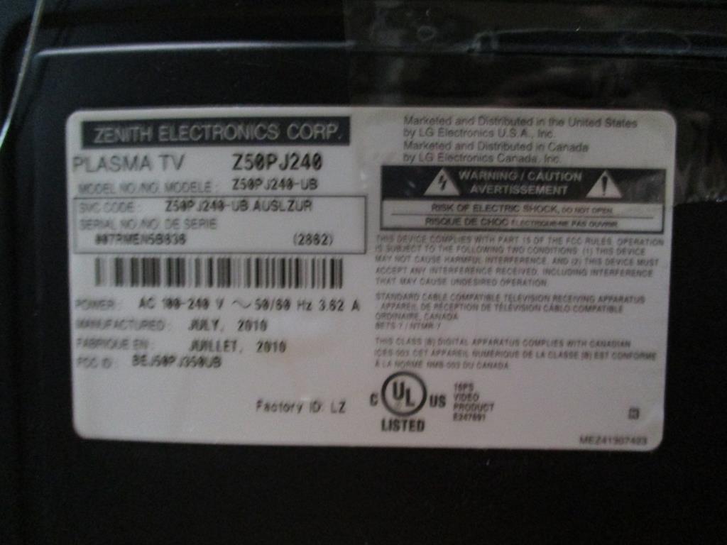 Get a great deal with this online auction presented by PropertyRoom.com on behalf of a law enforcement or public agency client. Model:Z50PJ240-UB Screen Size:50" Date of Manufacture:July 2010 Measurements:28H, 12W, 46L Base:yes Remote Control:no Power Cord:yes Physical Condition:Fair, scratches, niks Testing Results: Item was tested for power only and it powered on, displayed menu. Input and output ports were not tested and may be non-functional. Item is sold "As Is".