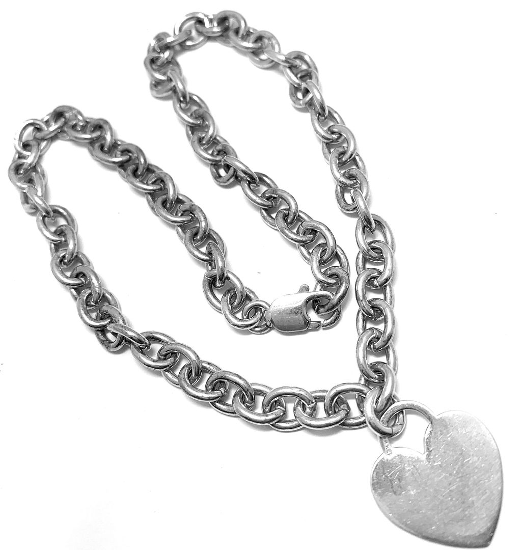 58.5 gram .925 Sterling Silver & 18K WG Large Heart Necklace