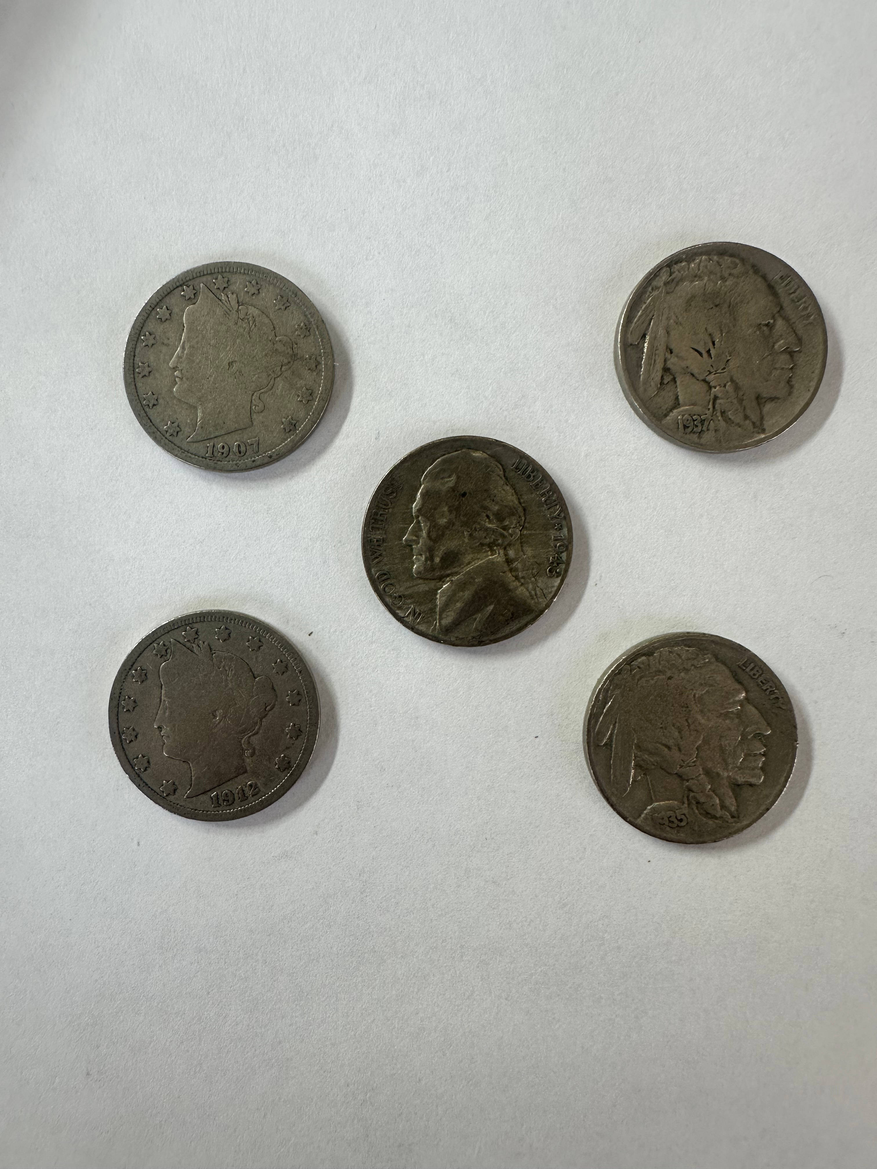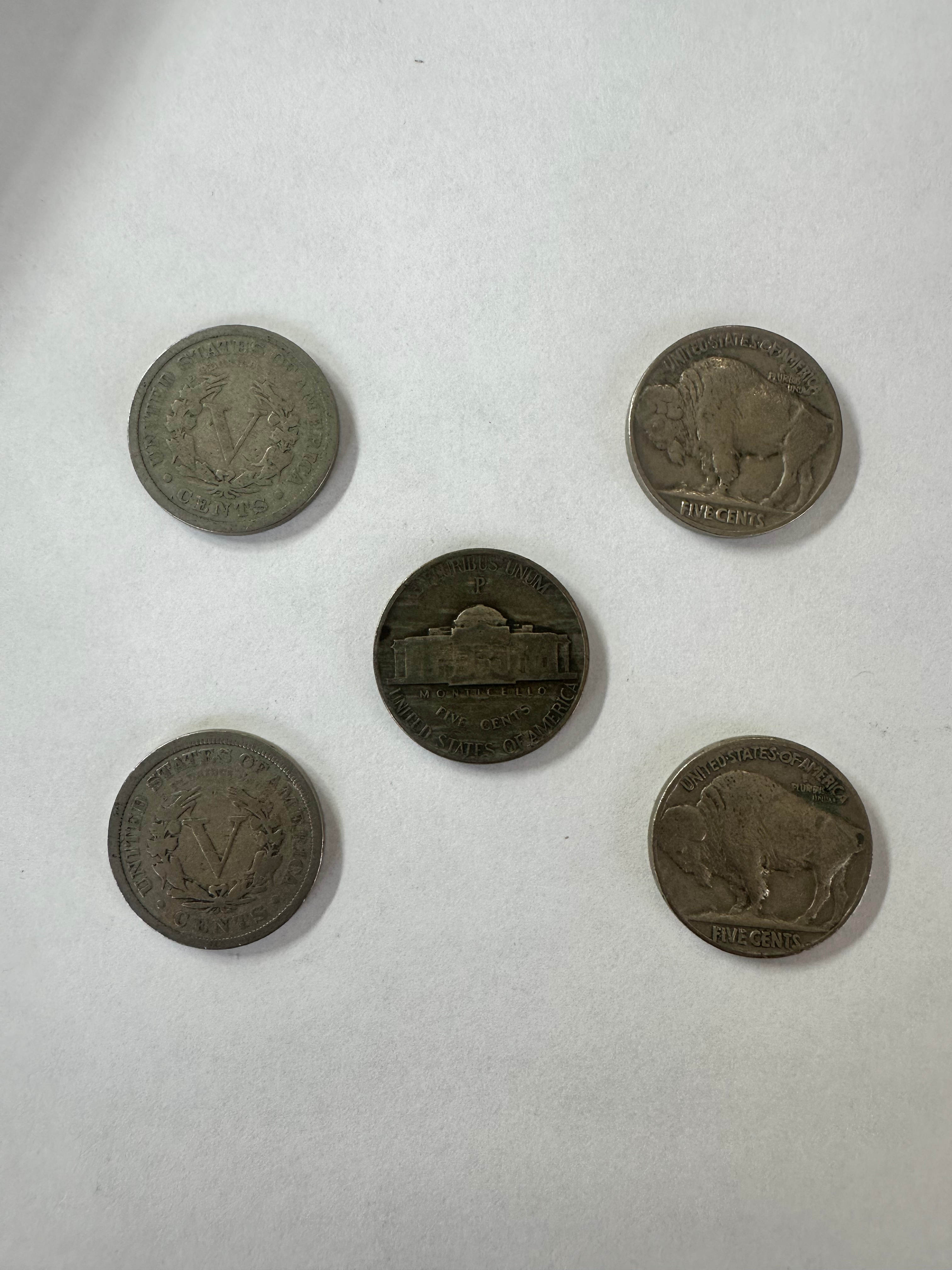 5x Nickel Lot, Silver war, buffalo and V nickels