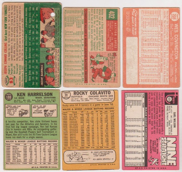 This is a collection of 6 different 1950's/1960's Topps baseball cards.  These are mostly in Poor condition.  They have wear/creases/damage/markings/etc.  This lot includes: