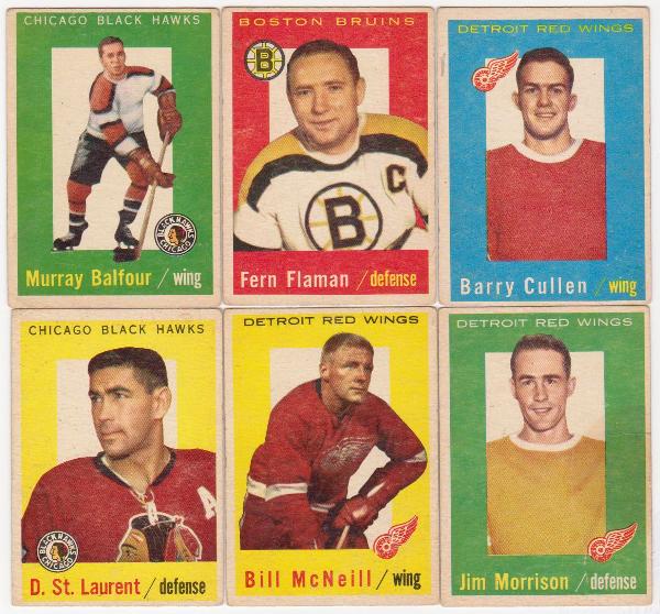 6 Different 1959-60 Topps Hockey Cards - Vintage Lot