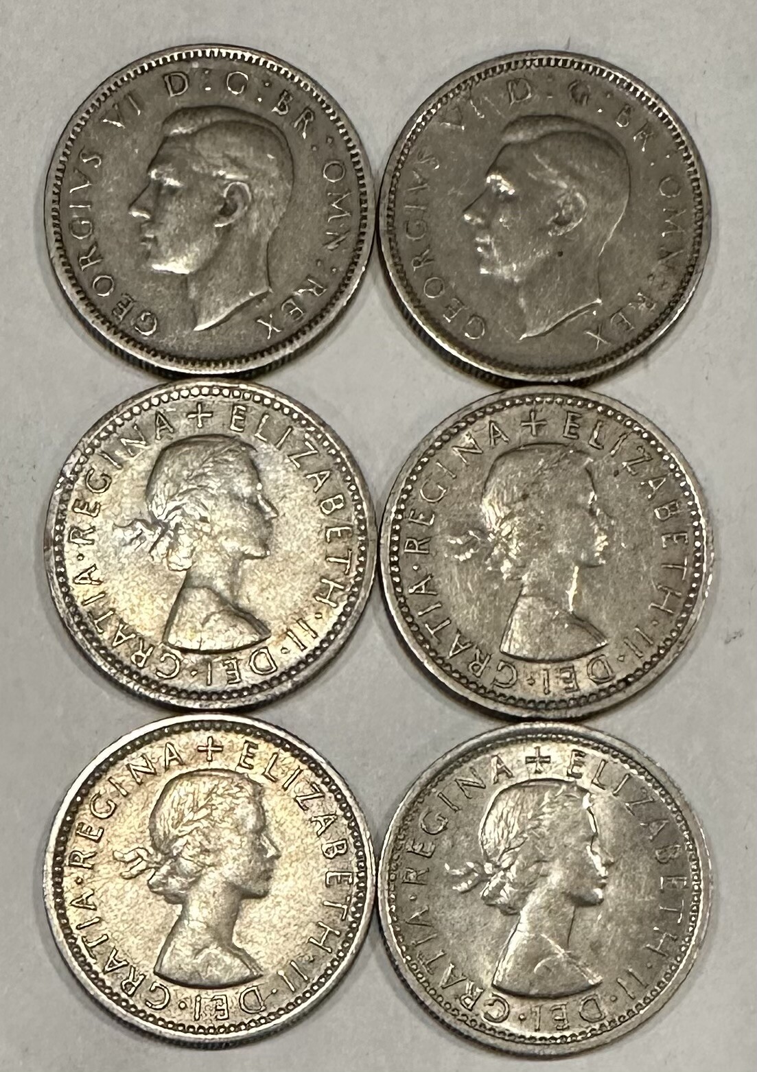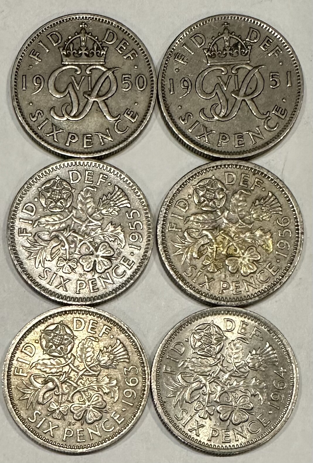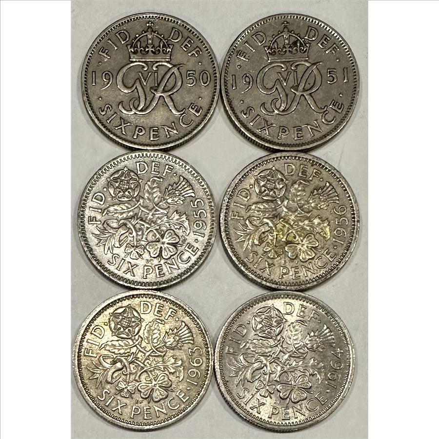 >(6) Great Britain Sixpence Coins - A Pocket Full of Sixpence! 1950, 1951, 1955, 1956, 1963 and 1964