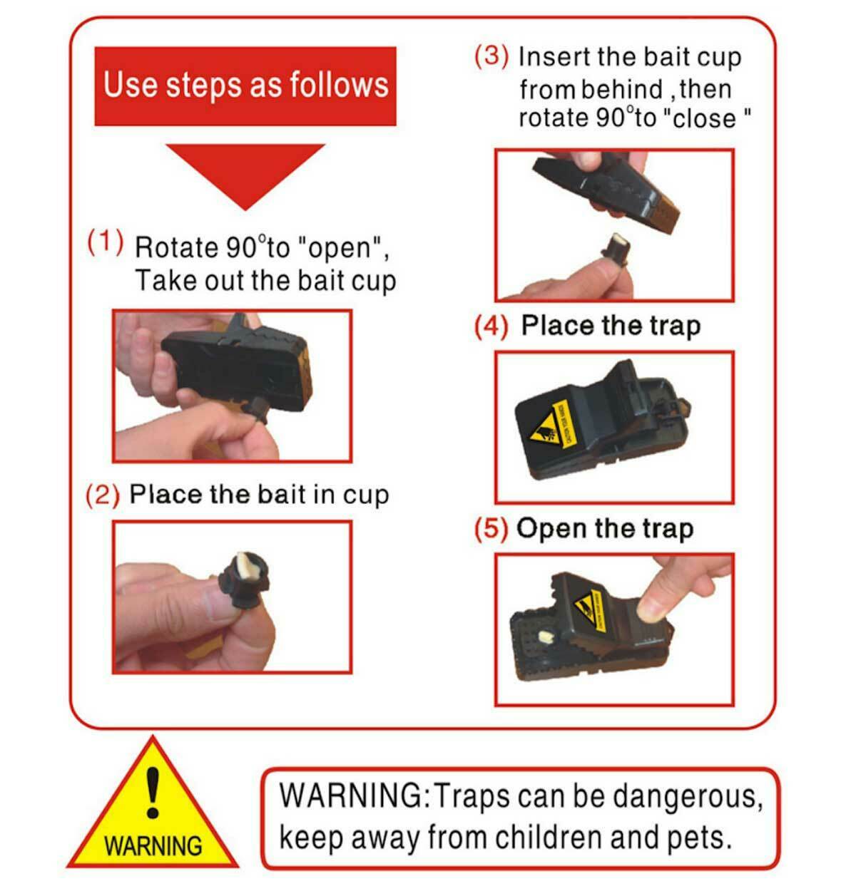 Just place the bait in the cup, then open the trap