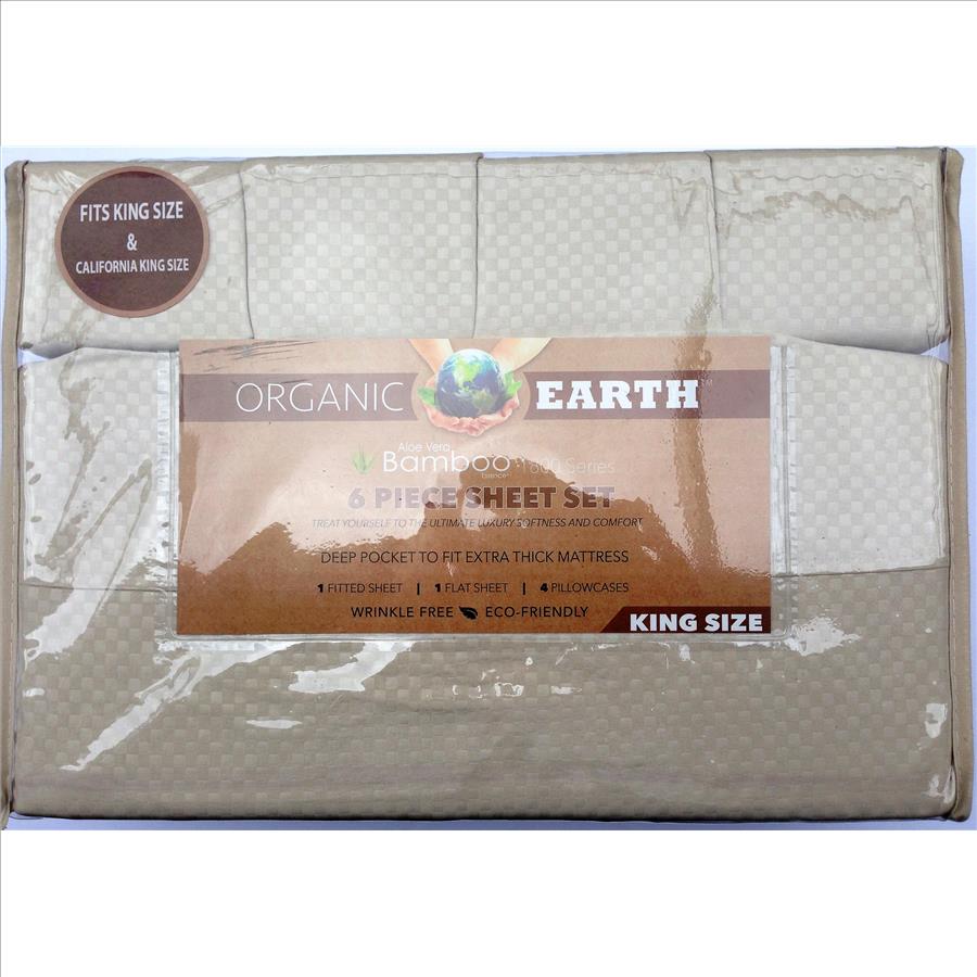 6 pcs Organic Earth Plus 1800 King Bed Embroidered Sheets