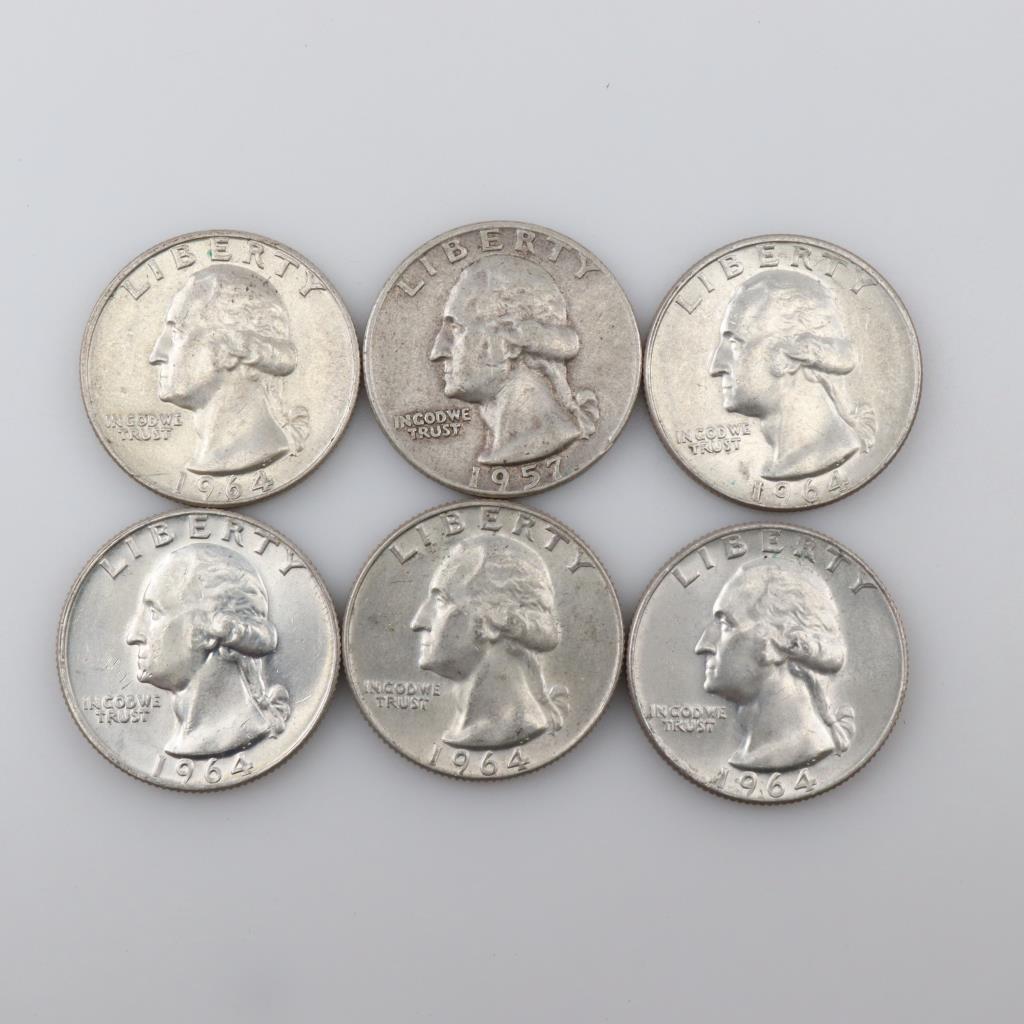 6 US Silver Quarters