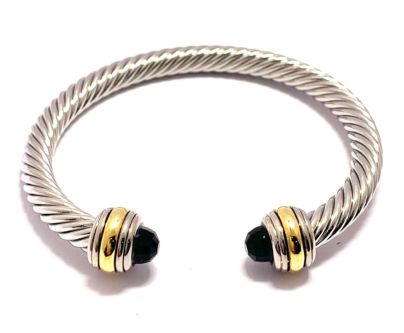 Designer Inspired Ladies 6.00ctw Black Spinel Cable Bangle Bracelet
