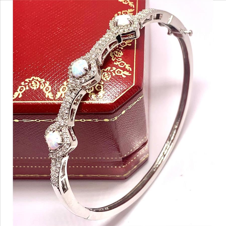 6.00ctw Diamonique Diamond & Opal Bangle Bracelet