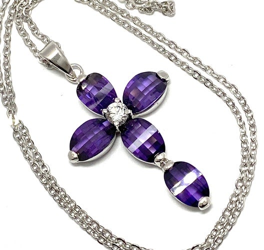 6.50ctw AAA+ gr-(1)ade Purple Cubic Zirconia Gold Overlay Cross Necklace