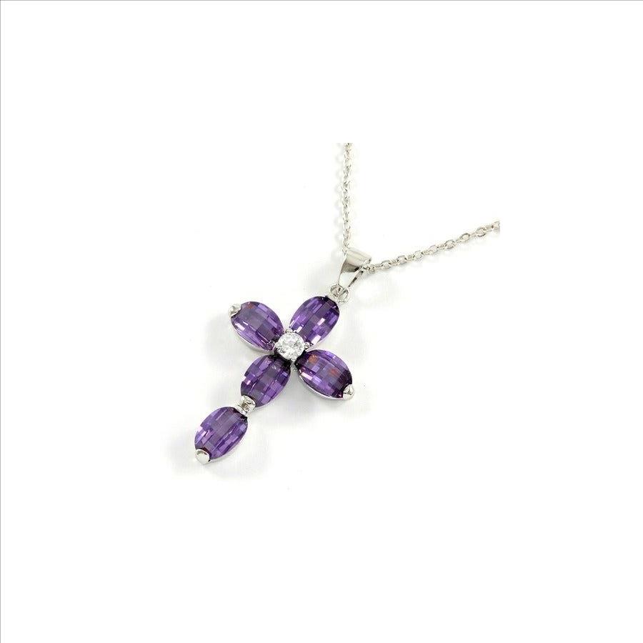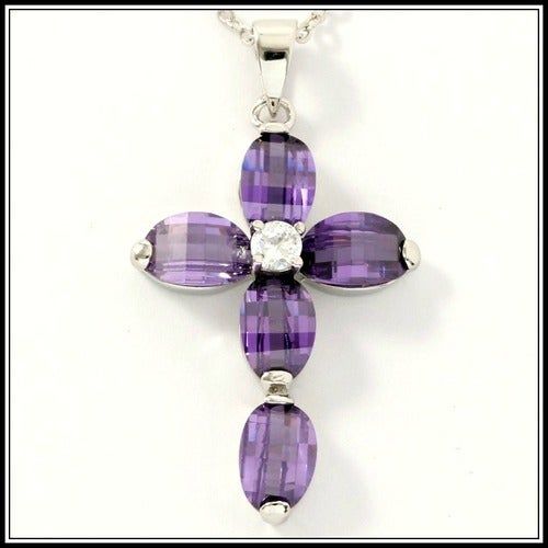 6.50ctw AAA+ Grade Purple Cubic Zirconia Gold Overlay Cross Necklace
