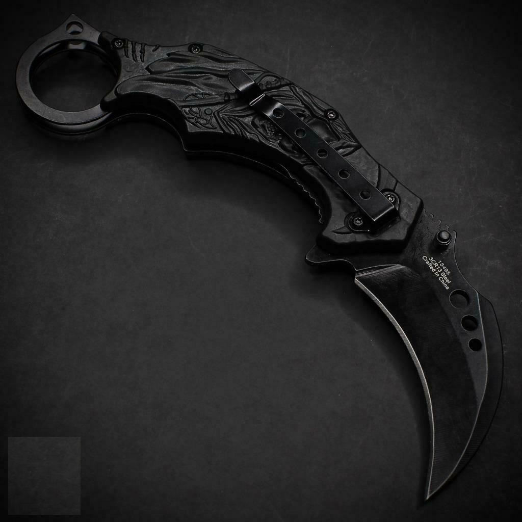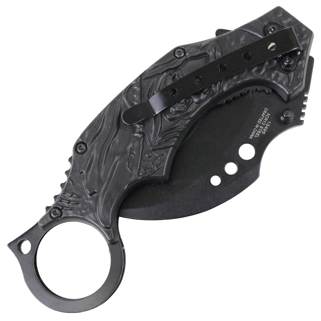 Awesome Black Underworld Fantasy Grim Reaper quick pocket knife.
