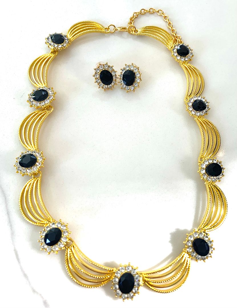75.00ctw Black Spinel & CZ Set Of Necklace & Earrings