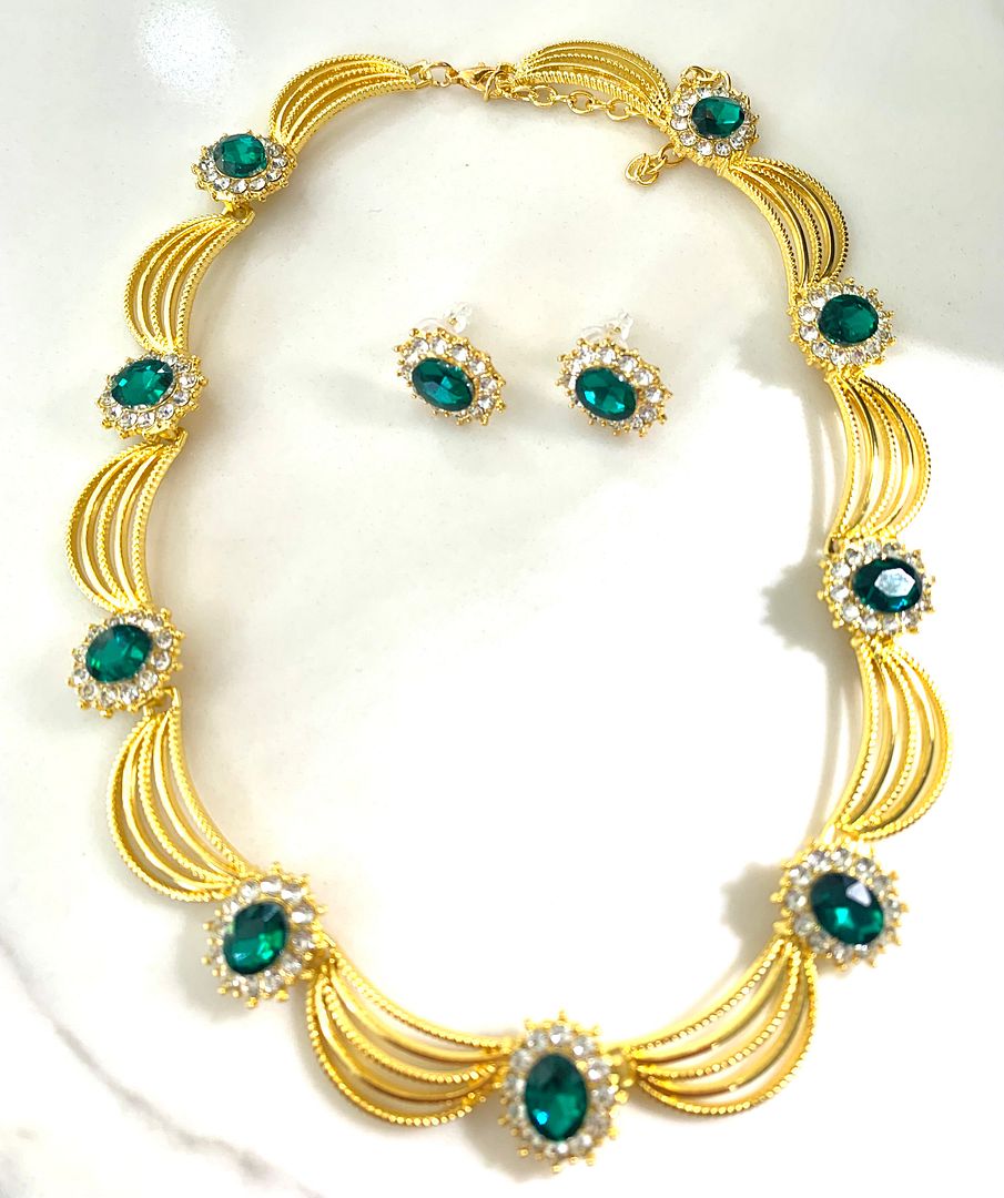 75.00ctw Emerald & CZ Set of Fancy Necklace & Earrings
