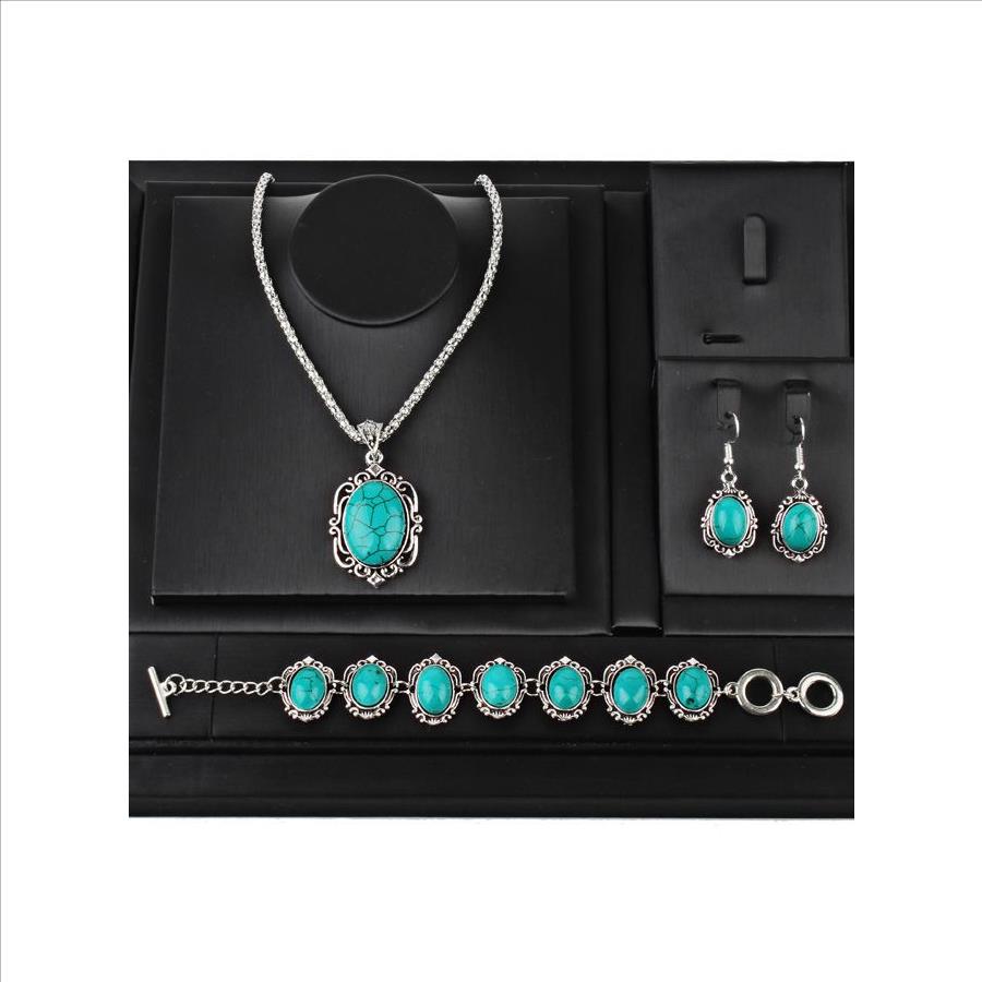 75.00ctw Turquoise Necklace, Bracelet & Earrings Set 18K Gold Overlay