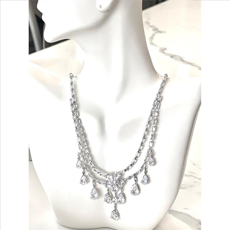 79.00ctw CZ 18k White Gold Ovr Statement Necklace 18"