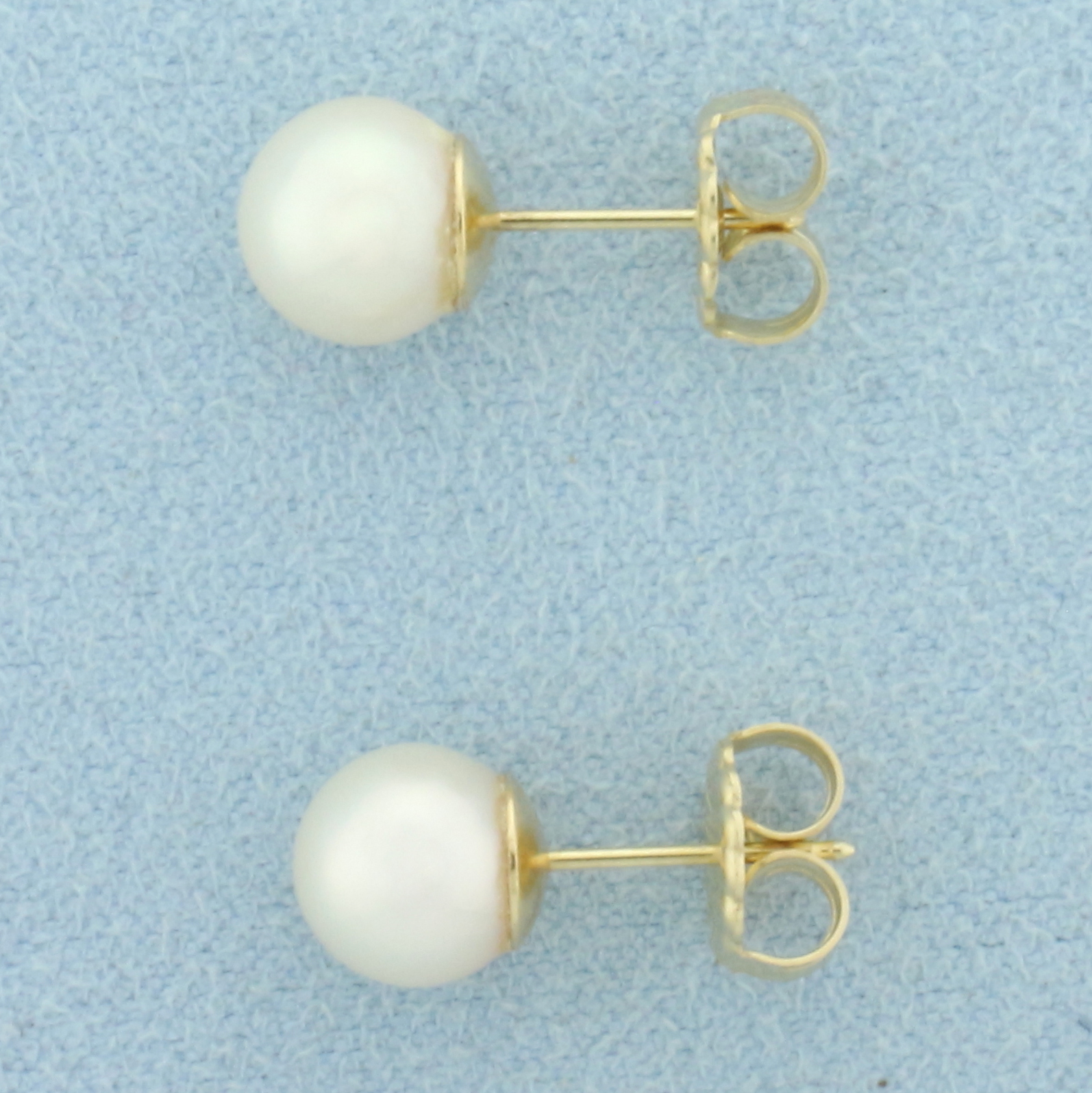 7mm Cultured Akoya Pearl Stud Earrings in 14k Yellow Gold