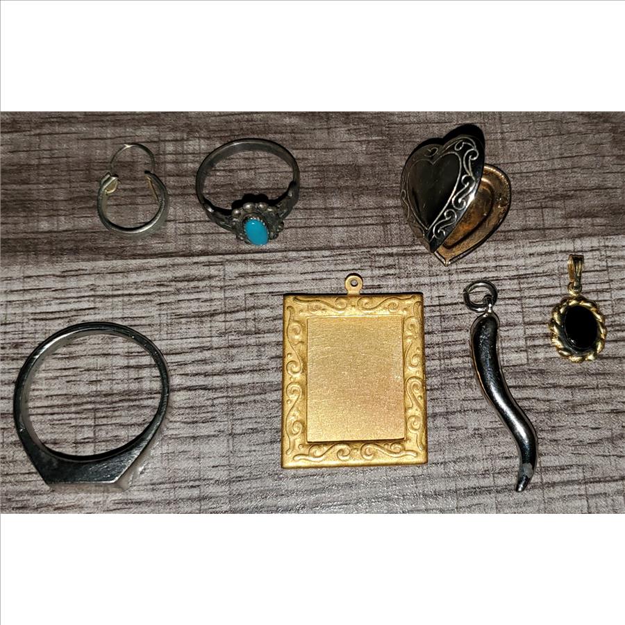 7pc Jewelry lot Rings/ Pendants. There is a Sterling ring in the lot. Excellent assortment of items. You will receive exactly what is pictured.