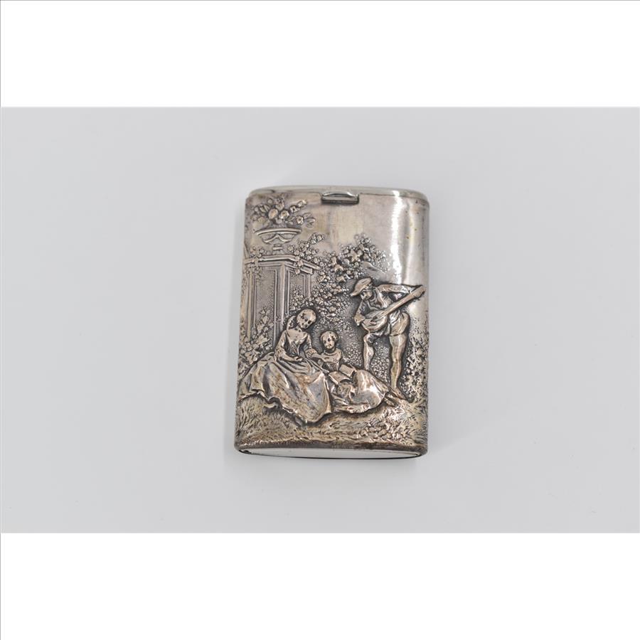 800 Silver Antique German Garden Bard Scene Match Box Case