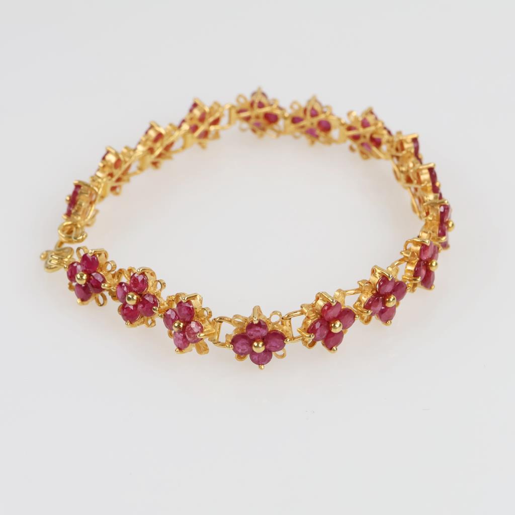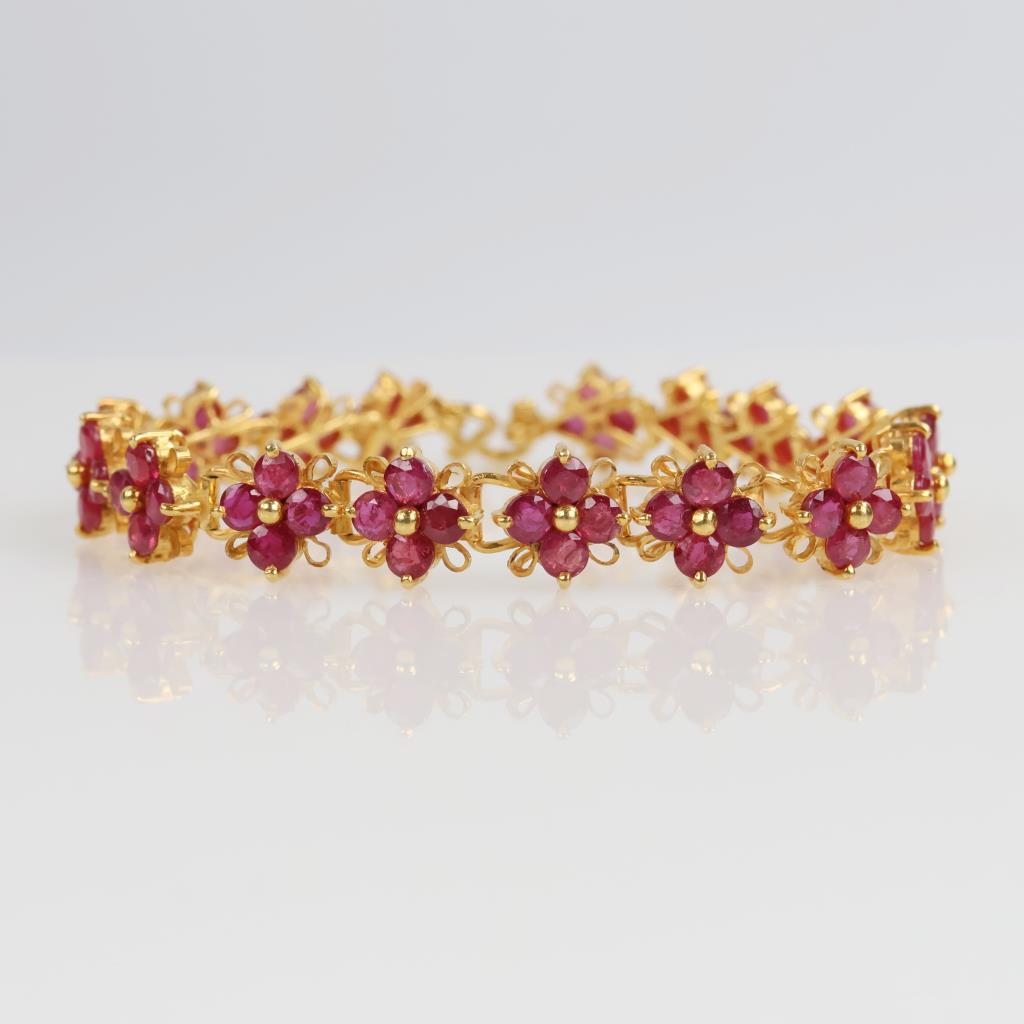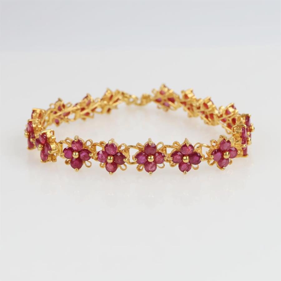8.16ctTW Natural Ruby 18kt Gold Flower Link Bracelet-Evaluated By Our Certified Gemologist-GIA