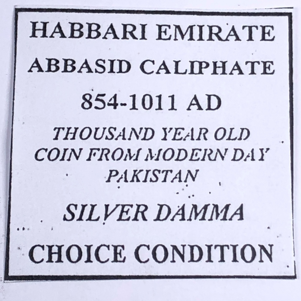 854-1011 AD Habbari Emmirate Abbasid Caliphate*Silver Damma*From Modern Day Pakistan