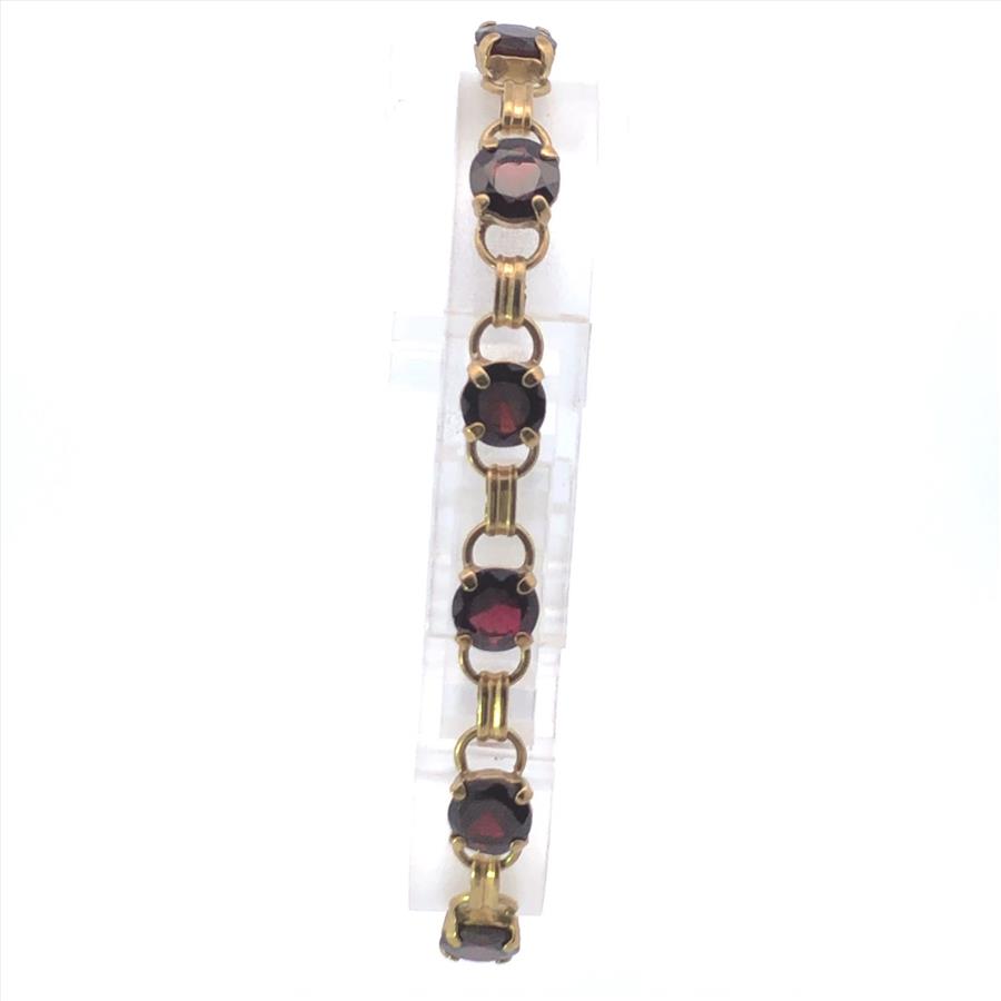 8K 1930's Round Garnet Vintage Ornate Chain Yellow Gold Bracelet 7.75"