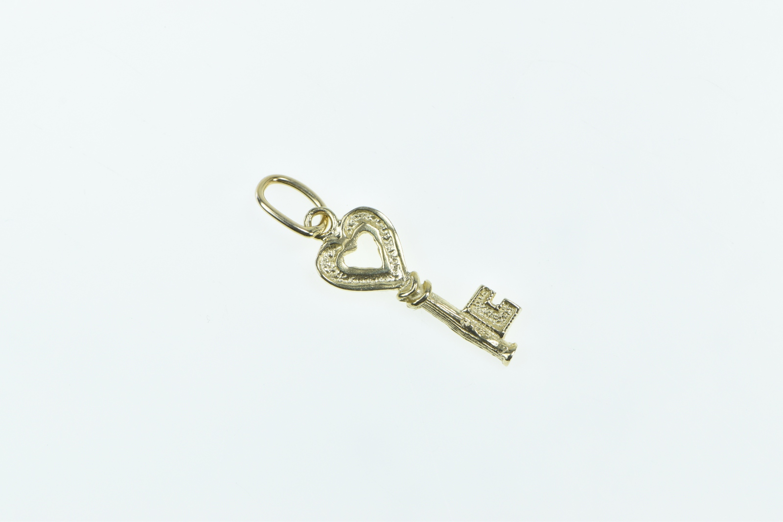8K Heart Skeleton Key Love Promise Symbol Yellow Gold Charm/Pendant